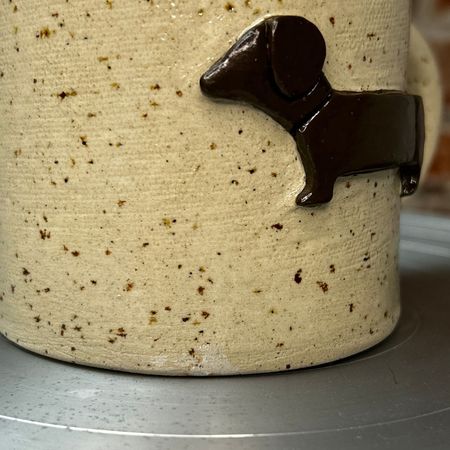 Nie trzeba być psiarzem, żeby lubić jamniczki. No bo kto nie lubi jamniczków? A jeśli lubisz i jamniczki i kawkę i fajne kubki, to jesteś w dobrym miejscu. Kubeczek posiada minimalny ubytek w szkliwie, widoczny na ostatnim zdjęciu.