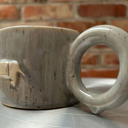 Na uchu kubka znajdziesz dekoracyjną, ociekającą kroplę szkliwa.
